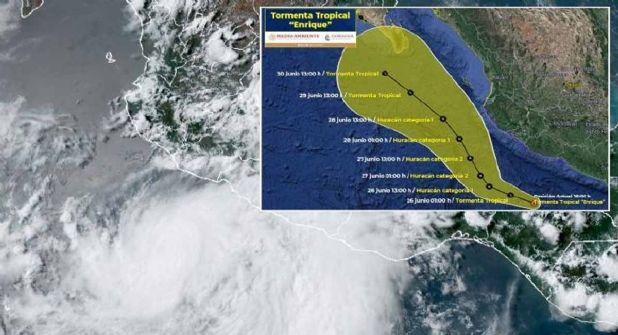 De acuerdo con los pronósticos, tras convertirse en huracán se espera que hoy en la noche de este sábado Enrique alcanzará la categoría 2. Según la trayectoria del fenómeno, los meteorólogos esperan que no toque tierra en costas mexicanas.