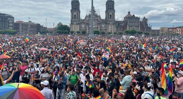 Los gritos de consignas como “y va a caer, y va a caer, la homofobia va a caer” y “no que no, sí que sí, ya volvimos a salir” inundaron las calles y el Zócalo.