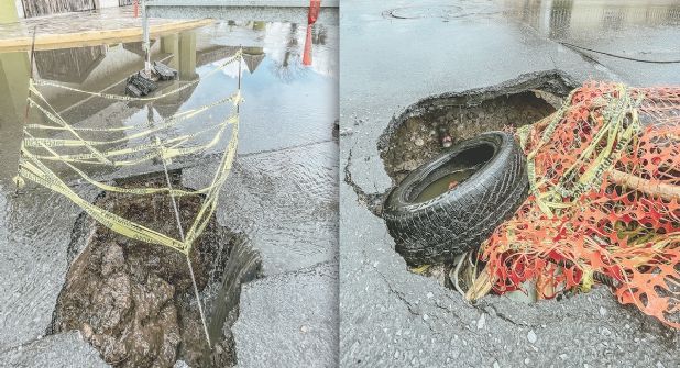 Uno de los que tiene más tiempo se localiza en el crucero de Leandro Valle y 5 de Febrero, colonia Guerrero, donde hace aproximadamente dos meses está un hundimiento en medio de la calle.