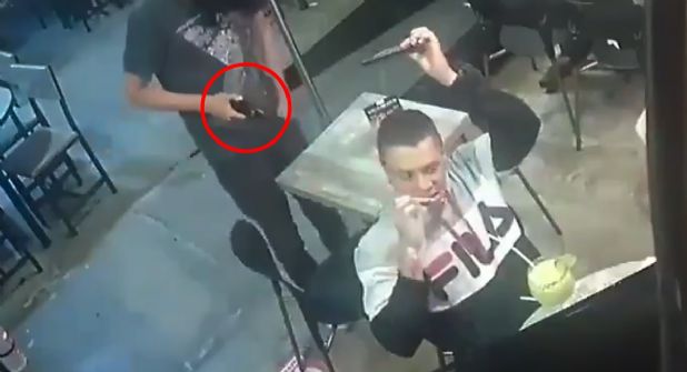 Un hombre que comía alitas en el restaurante con su acompañante nunca dejó de alimentarse a pesar de ser apuntado con un arma de fuego.