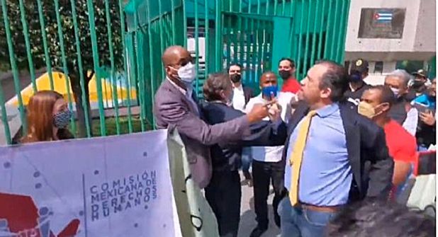 “Están saliendo a agredirnos y a golpearnos, el guardia negro que estaba ahí me empujó en territorio mexicano, entonces tenemos un problema porque creen que estamos en Cuba y que pueden venir aquí a reprimir a los ciudadanos”.