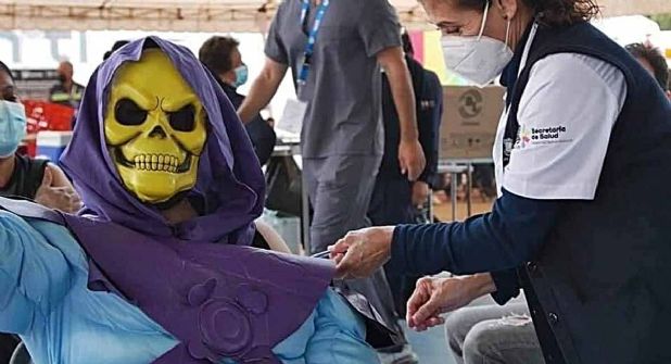 Un fanático de la serie de He-Man acudió a aplicarse la vacuna en Morelia, Michoacán, vestido del malo de la serie, Skeletor, causando furor en redes sociales.