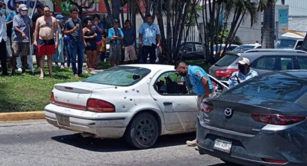Sobre la Avenida costera Miguel Alemán se detonaron varios disparos que impactaron en dos vehículos y hoteles. El ataque, según los testigos, ocurrió a la altura del fraccionamiento y playa La Condesa y cerca del hotel El Presidente.