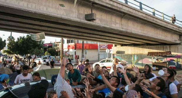 Lo que no imaginó es que la situación se saliera un poco de control debido a que los los migrantes se amontonaron e intentaron destruir el vehículo del tijuanense que regalaba dólares.