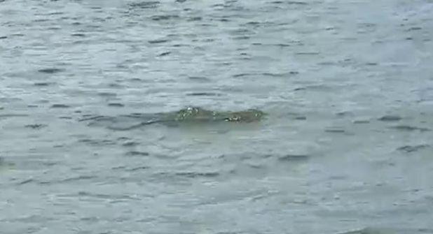 El lagarto se encontraba nadando en las proximidades de la playa, alcanzándose a ver a simple vista por los visitantes, quienes no dudaron en grabar el encuentro.