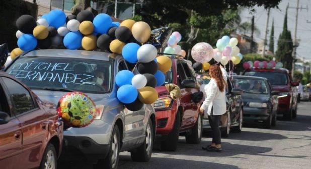 Los padres hacen absolutamente todo por los hijos y ahora que la modalidad para ceremonias y graduaciones es en "parade" ellos acuden aunque no tengan un carro. Tal es el caso de una madre que llevó a su hijo de preescolar a la caravana de graduación en un carrito de juguete.