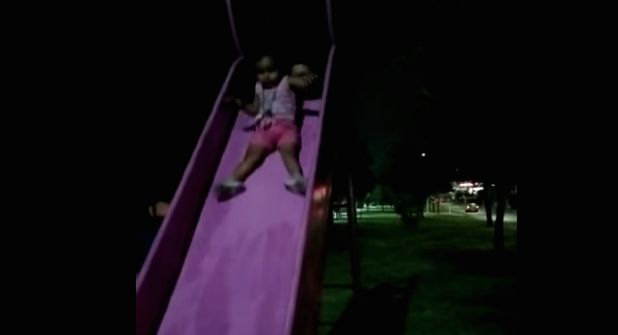 La mujer asegura que no se habían percatado de la presencia extraña, si no que al revisar el video pudo ver lo que parece una cara muy cercana a la niña, que está por deslizarse en una resbaladilla del parque.