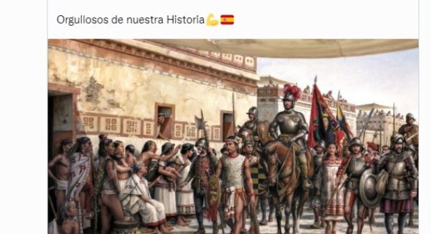 España logró liberar a millones de personas del régimen sanguinario y de terror de los aztecas. Orgullosos de nuestra Historia" comentó Vox España.