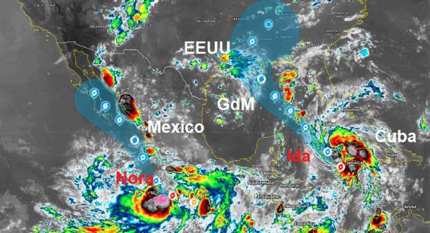 Los Huracanes Ida y Nora estarán afectando durante varios días el sistema clomatológico de la República Mexicana.