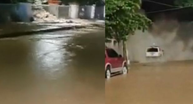 La violenta corriente de agua provocó inundación de casas y negocios y además, algunos vehículos fueron arrastrados.