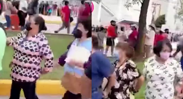 Donde se observa en las imágenes del video las personas haciendo linea para la vacunación contra el covid, pero se ven algunos tomados de las manos y corriendo para que avanzara la línea.