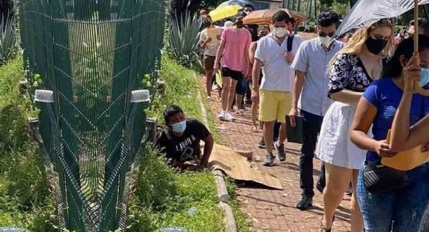 Testigos señalaron que el muchacho había despertado muy temprano, pero 'le ganó el sueño' y volvió a dormirse, cuando despertó la segunda vez decenas de personas ya estaban esperando ser vacunadas en la larga fila. Las personas le pasaban por un lado al joven sin que nadie lo despertara.
