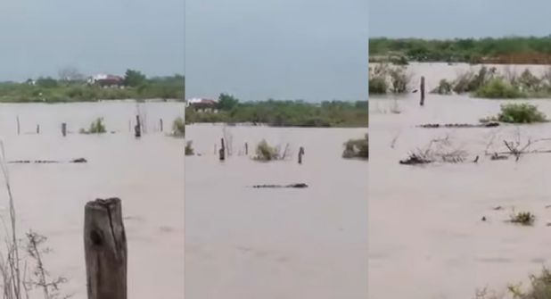 En redes sociales circula un video donde se ve un cocodrilo en las inundaciones de Sinaloa causadas por el paso del huracán "Nora".
