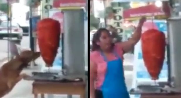 Un perro fue grabado mordiendo un trompo de pastor de una taquería ¿se vendieron los tacos? Aquí te mostramos el video.