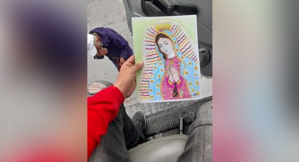 En Guadalupe Nuevo León, un abuelito recorría las calles vendiendo sus dibujos de la Virgen de Guadalupe para poder regalarles leche a sus nietos, pero no conseguía vender ninguno. Un hombre se le acercó y le dio 100 pesos por uno de los dibujos por lo que pudo cumplir su promesa.