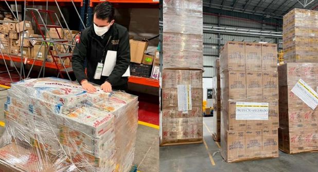 En una segunda acción, se identificaron incumplimientos en el centro de distribución de Kellogg 's, ubicado en El Marqués, Querétaro, por lo que fueron aseguradas 371 mil 067 piezas de producto.