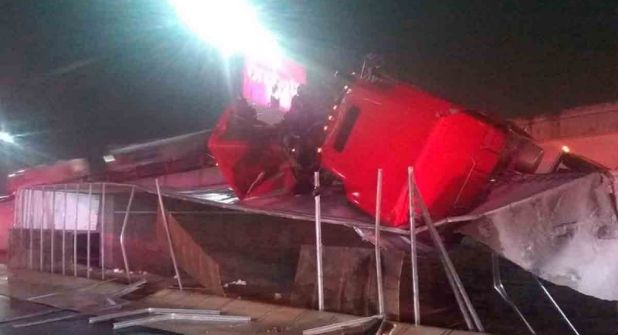 Un tractocamión cayó mientras conducía ne un paso a desnivel de avenida Revolución y Chapultepec, en Monterrey, Nuevo León.
