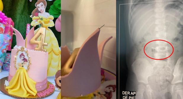 El hombre ha realizado la denuncia, argumentando que lo que era un momento feliz por este descuido termino en angustia para la familia pues tras presentar molestias sus dos hijas pequeñas pasaron la noche en el hospital después comer estos alfileres que se encontraban escondidos en el pastel sosteniendo parte de la decoración.