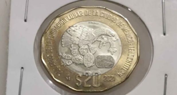 Se trata de la moneda de 20 pesos de los 700 años de la fundación lunar de la ciudad de México-Tenochtitlan, acuñada en 2021 por el Banco de México. Entre sus principales detalles resalta en primera instancia su forma dodecagonal.
