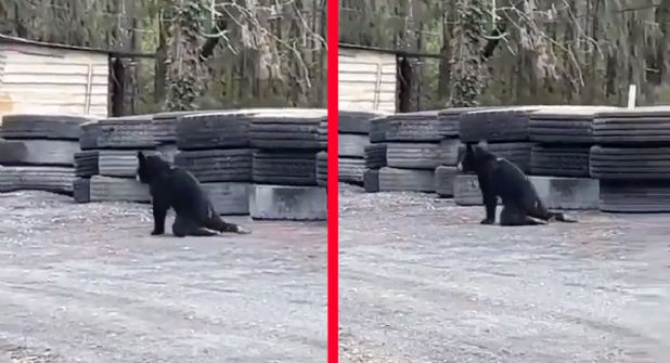 En el material se puede ver al animalito arrastrándose mientras se ayuda con sus patas delanteras para llegar a donde se encuentra la camada de osos negros.