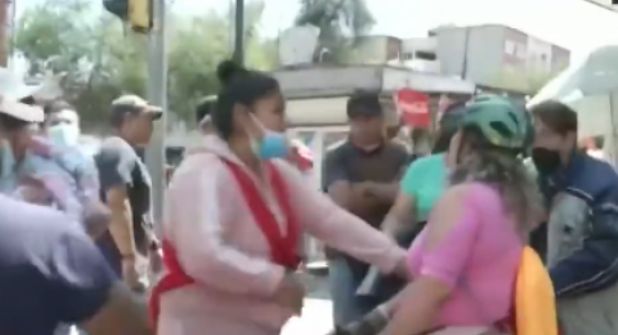 El grupo de manifestantes que impedían el paso de todos los transeúntes por la vialidad, fue bajo este contexto que sucedió la pelea; una ciclista realizaba su recorrido diario y los asistentes que se colocaron sobre la calle le impidieron el paso.
