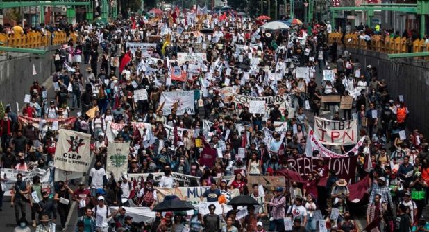 Bajo el lema “ni perdón ni olvido”, los manifestantes iniciaron el recorrido desde la Plaza de las Tres Culturas hacia la plancha del Zócalo de la CDMX, lugar donde se realizó el mitin conmemorativo.