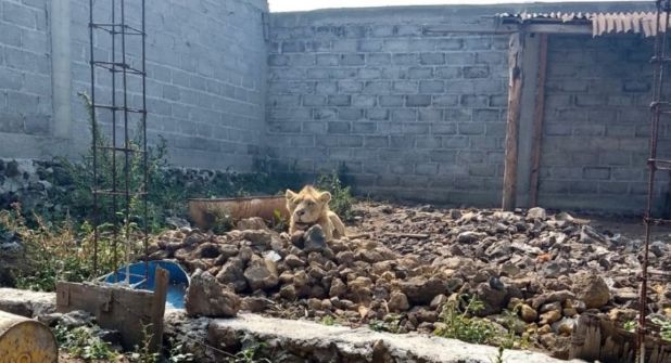 “Al revisar en interior de una casa en busca de una persona reportada como desaparecida, solamente encontraron un león sobre un terreno en construcción. El animal presentaba signos de desnutrición y se le notaban los huesos a través de la piel”, se lee en el comunicado.