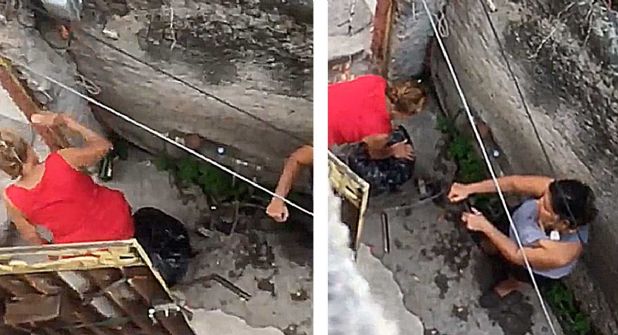 Las mujeres metieron en una bolsa a varias crías de gatos y empezaron a realizar su inhumana acción sin darse cuenta que los vecinos se percataron de sus intenciones de matar a los felinos.
