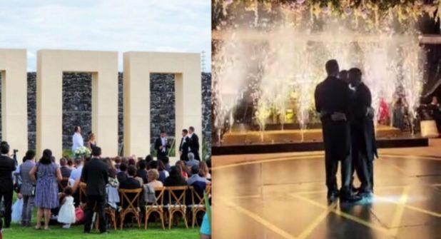 La ceremonia se llevó a cabo con una lujosa fiesta digna de la ocasión, se realizó al aire libre con decenas de invitados que presenciaron la promesa de amor entre los tres enamorados hombre.