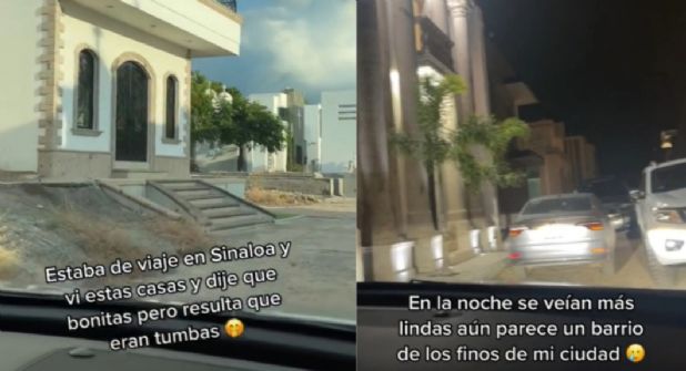 Fue en el cementerio Jardines del Humaya, de Culiacán, Sinaloa, donde la mujer documentó su visita al lugar, mostrando tremendo mausoleos dedicados a capos del narcotráfico. En su experiencia indicó ver todo lo que una casa debería tener, incluso siendo iluminadas de noche, permitiendo la entrada de automóviles al sitio por sus espaciosas pasarelas.