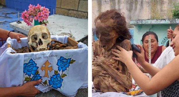 El amor a sus parientes que va más allá de la muerte han hecho que la ceremonia de la "La limpieza de los santos restos" se prolongue a través de generaciones de descendientes mayas.