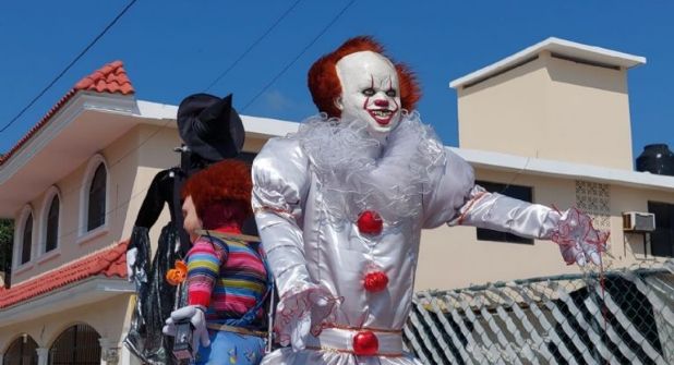 Además de su disfraz, en su taxi lleva los personajes de una bruja, Chucky y el payaso Pennywise, de IT.