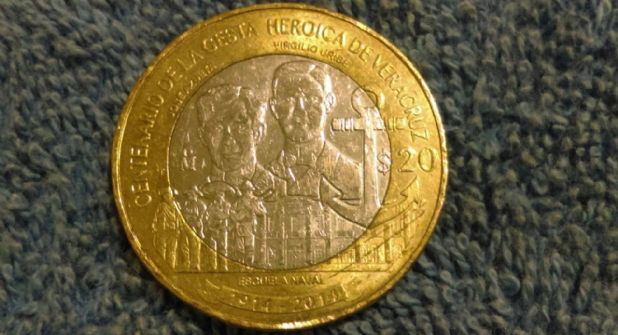 Se trata de la moneda de 20 pesos de la familia C1 cuya edición es alusiva al Centenario de la Gesta Heroica de Veracruz. Estos 20 pesos se lanzaron de forma exclusiva por el aniversario de de la Gesta Heroica de Veracruz.