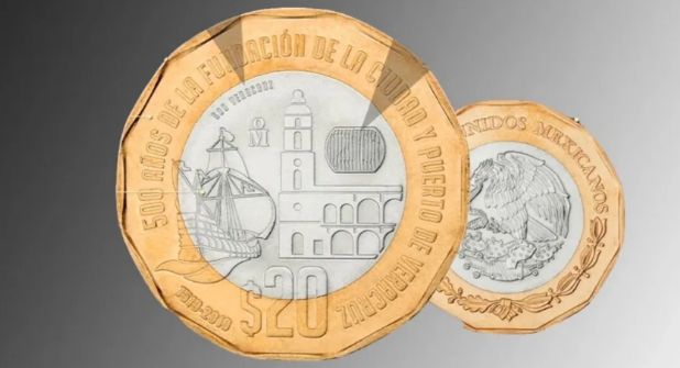 Se trata de la moneda de 20 pesos de la familia C1 conmemorativa a los 500 años de la fundación de la Ciudad y el puerto de Veracruz, en 1519. Dicha pieza fue acuñada por el Banco de México (Banxico) y puesta en circulación en 2019.
