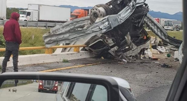 La volcadura del vehículo pesado se dio en en el kilómetro 88 de la autopista Laredo, en el municipio de Sabinas Hidalgo, Nuevo León. Al lugar se reportaron elementos de Protección Civil del Estado, debido a la indicación de personas heridas en el sitio, sin embargo, después de arribo se descartó este móvil.