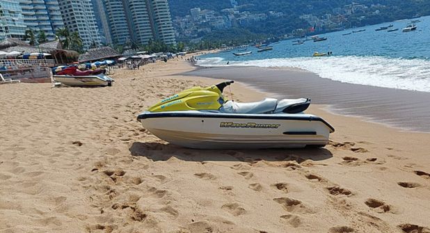 Una de las motos acuáticas en las que se enfrentaron a balazos en Acapulco fue asegurada por la policía investigadora.