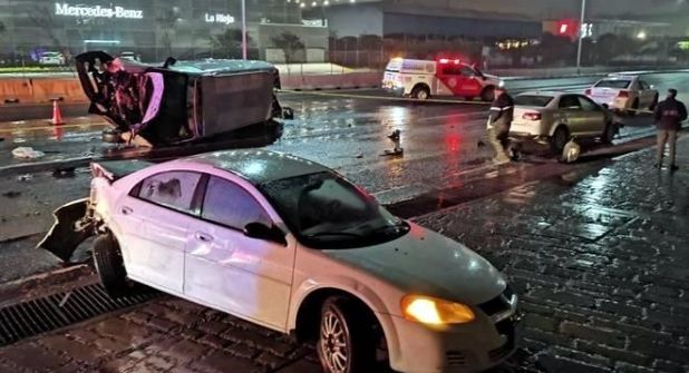 En estos hechos, una camioneta terminó volcada y también dos vehículos que fueron chocados. Trascendió que los autos se encontraban varados.