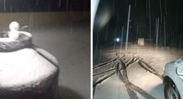 En redes sociales circularon imágenes, en las que se aprecia el camino cubierto de nieve, también algunos vehículos que fueron tapizados de las plumas blancas.