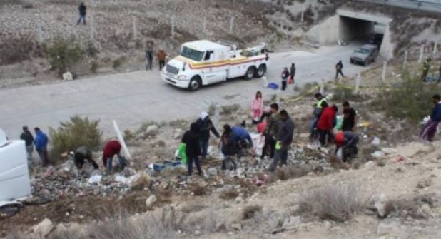 En cuanto se corrió la voz que había un tráiler de cerveza volcado, decenas de residentes de los ejidos Ojo Caliente y San Gregorio acudieron al lugar y provistos de costales y bolsas dieron rienda suelta a la rapiña de la costosa carga.