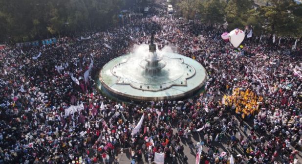 Martí Batres, secretario de la Ciudad de México y la secretaria del Bienestar, Ariadna Montiel, también están en la marcha, que hasta las 12:45 de este domingo no había finalizado aún.
