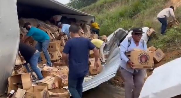 Lamentablemente, la gente que se acercó al tráiler volcado comenzó a sacar la mercancía; poco a poco fueron apareciendo decenas de personas que buscaban "cartones" de cerveza completos para llevárselos. Incluso hubo conductores de otros autos que se detenían para bajar y tomar cajas.
