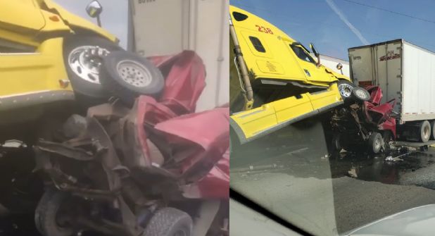 A través de redes sociales se observan las imágenes en las que se observa cómo la camioneta quedó completamente aplastada y destruida, mientras que su conductor quedó prensado sin vida en el interior.