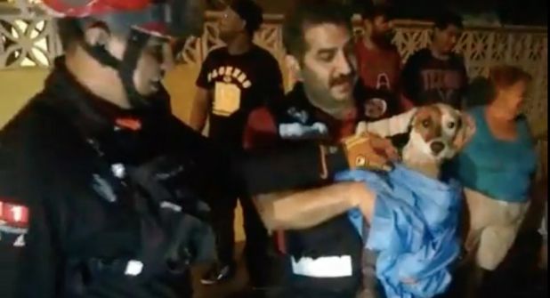 Las imágenes muestra cómo el can se encuentra a salvo, tapado con una manta azul y feliz de haber sido sacado de este lugar donde seguramente vería su final.
