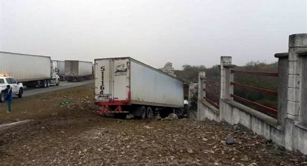 El joven relató a las autoridades que otra pesada unidad lo impactó de frente, así que perdió el control del tráiler y se salió de la carretera.