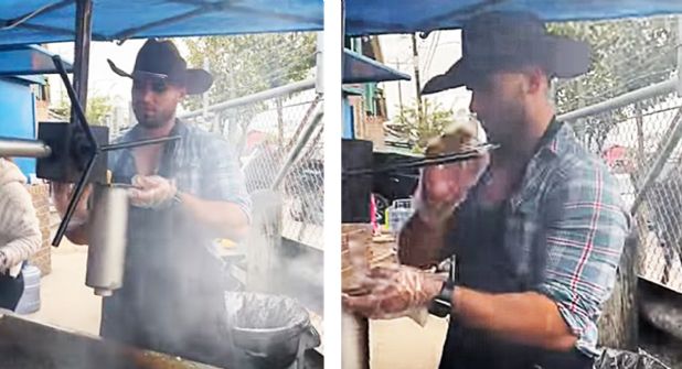 Además de cocinar churros, el vaquero también ha subido en su perfil de Facebook fotos donde está con un cazo en un fogón cocinando carnitas, por lo que se supone que su habilidad culinaria es diversa.