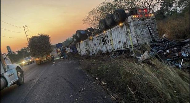 Un tráiler que iba cargado con chatarra volcó esta noche en la carretera federal Córdoba-Veracruz, a la altura de El Faisán; el conductor murió en el accidente y la zona está resguardada por la Guardia Nacional.