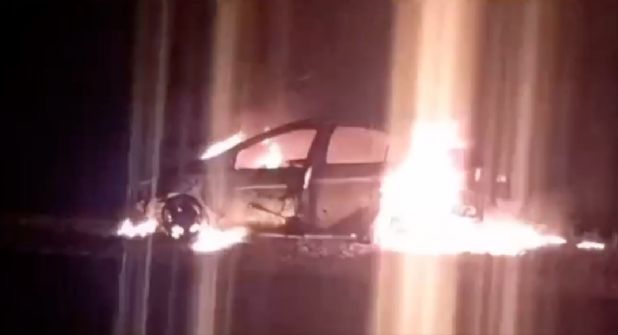 El conductor de un auto estuvo a punto de morir por una roca que se encontraba en medio del Anillo Periférico de Juárez, Nuevo León, al no verla chocó y su auto terminó consumido por el fuego.
