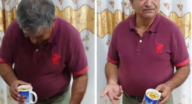 "¡Cálmate, Nico, cálmate!", le decía la persona que le dio la taza. "No estás revisando bien, la taza está muy bonita".