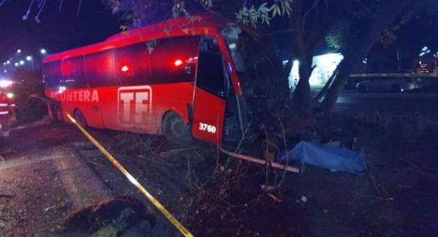 El conductor de un camión de pasajeros murió anoche tras chocar contra árboles en el camellón central de la Carretera Nacional, en Montemorelos, Nuevo León. Tres de los pasajeros resultaron lesionados.