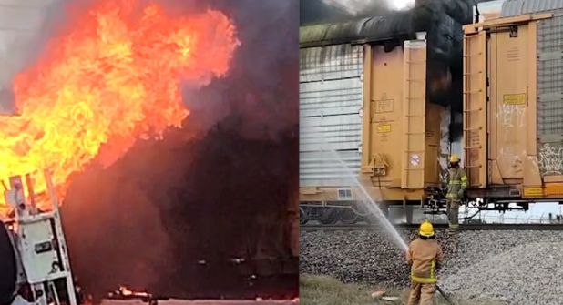 Empleados de la empresa ferroviaria Kansas City desgancharon los vagones que eran consumidos por el fuego, para evitar se propagara a los demás.